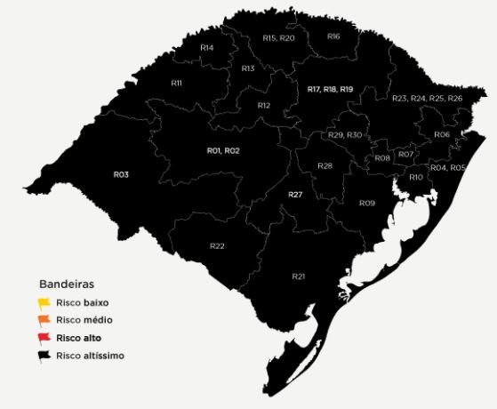 Governo do Estado do RS classifica todas as regiões do Estado em bandeira preta